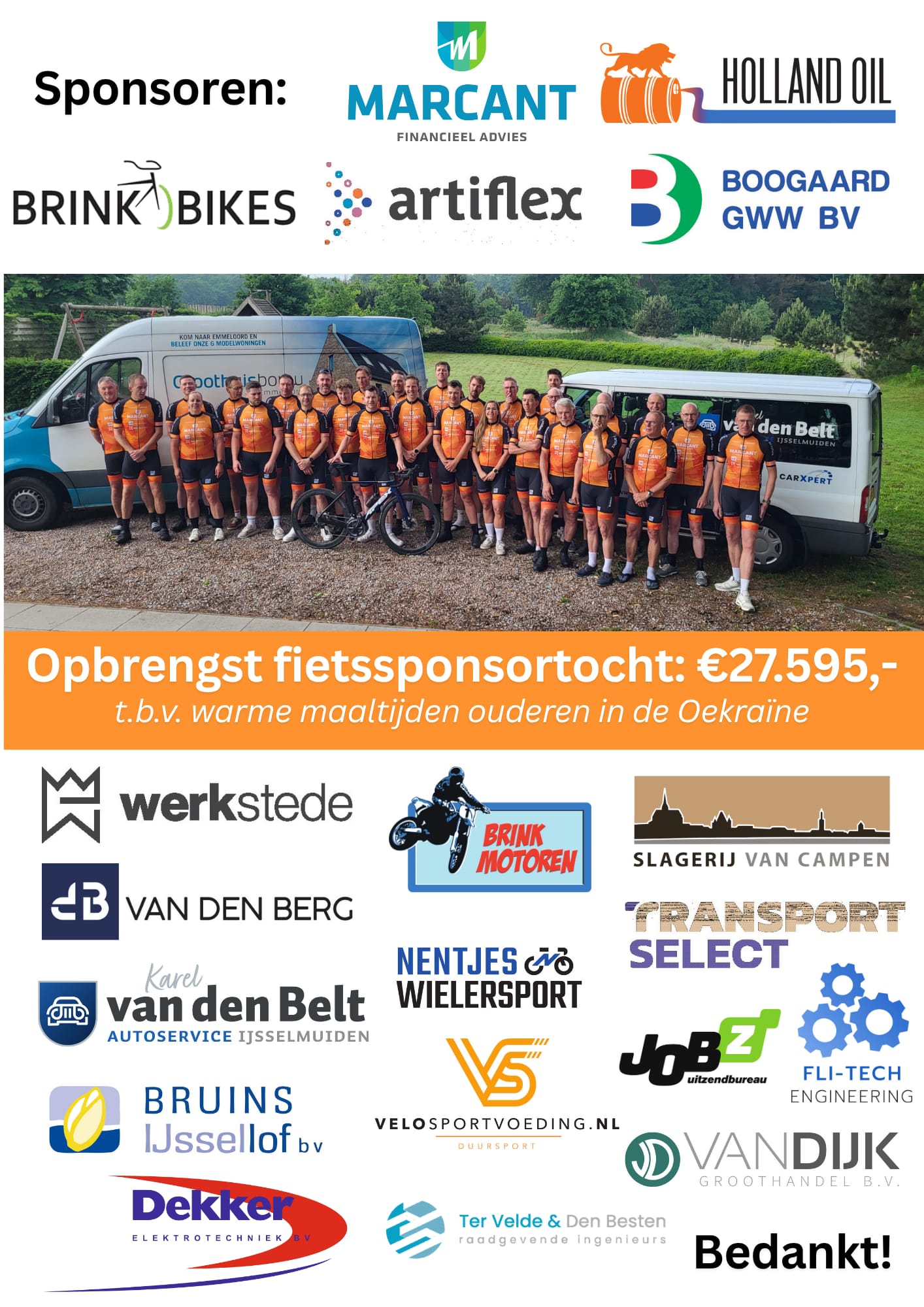 Maarliefst 30 man/vrouw meldt zich aan om mee te fietsen. 3 dagen lang wielrennen door Nederland. Het doel is om zoveel mogelijk geld op te halen die 1-op-1 worden vertaald naar warme maaltijden!